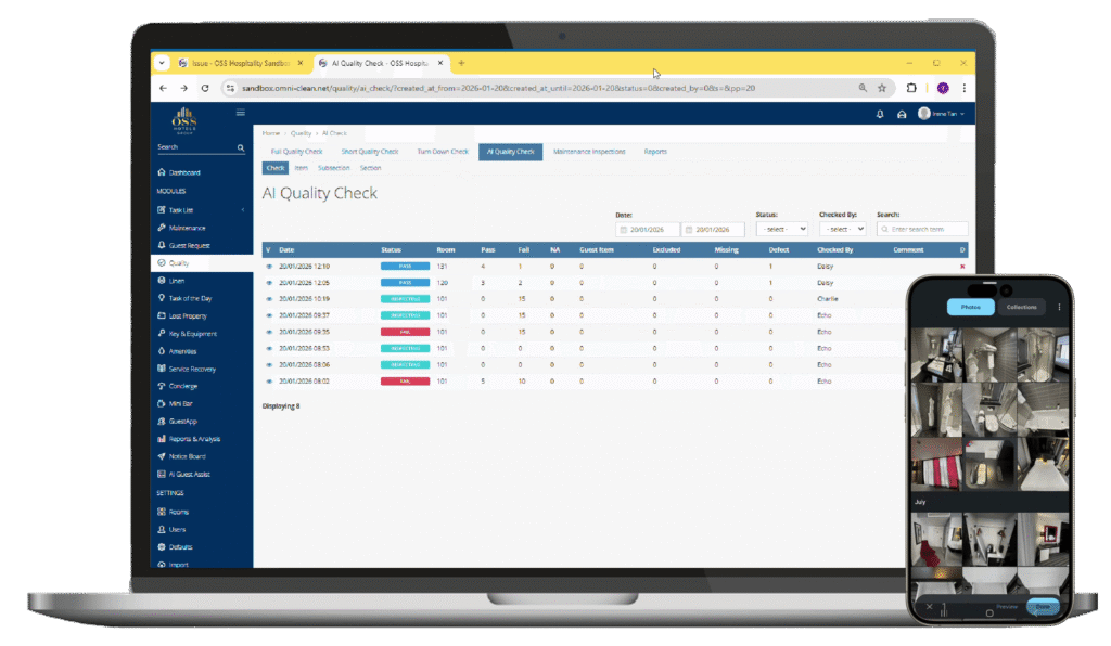 A self-learning AI solution that monitors and assesses cleanliness, maintenance, and overall room readiness, helping maintain consistently high standards and operational efficiency.