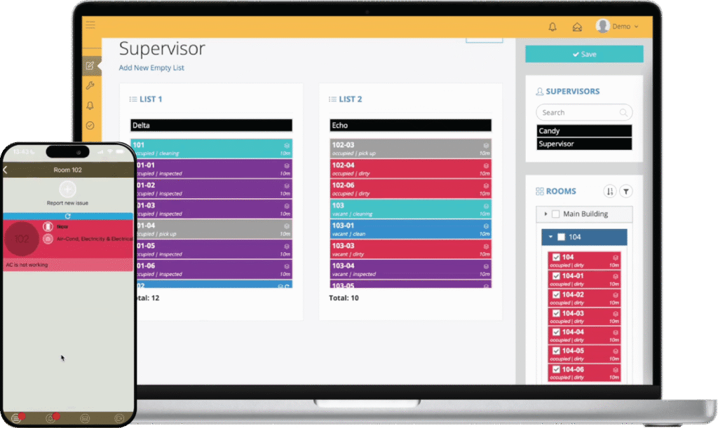 Streamline room turnover, optimise operations workflows, automate tasks, delight guests, monitor the room and users’ activity to maximise profitability.