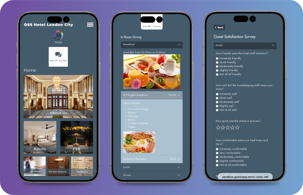 From their room, guests can request services, report issues, or order food—all through the Ask Mr Carson App for a seamless, personalised stay. AI Assist understands multiple languages and intelligently routes guest requests to the right department, improving response times and overall satisfaction.