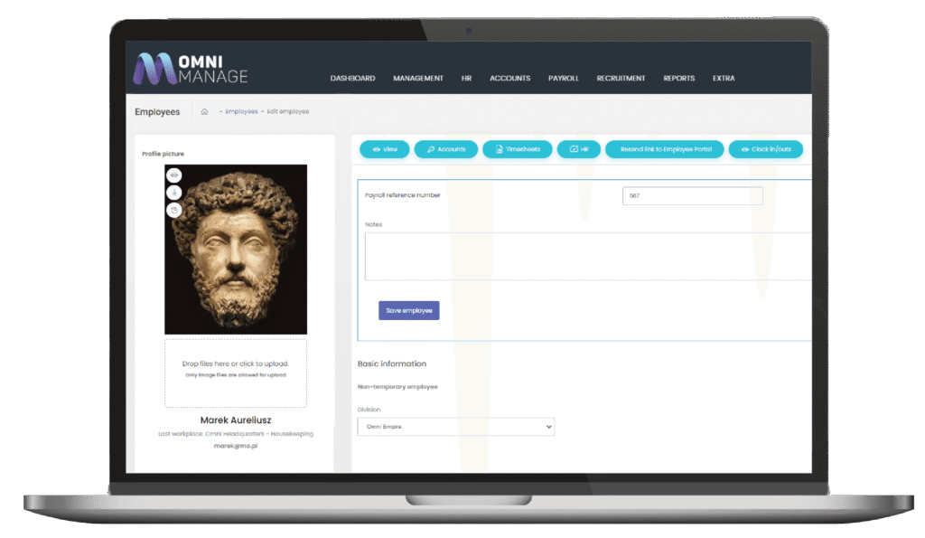 Staff can access payslips, shifts, worked hours, handbooks, and request leave online.